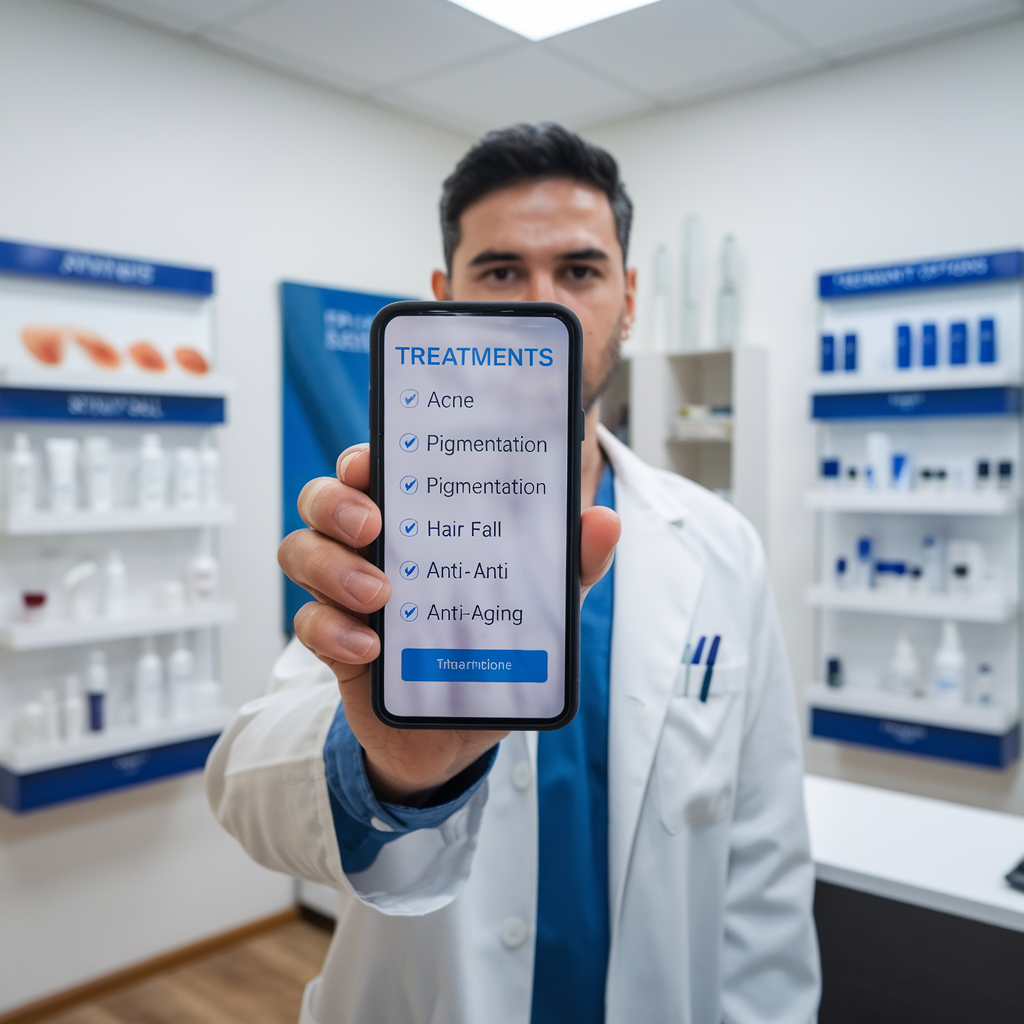 We treat acne, dark spots, pigmentation, hair fall, dandruff, skin allergies, anti-aging concerns, and more.